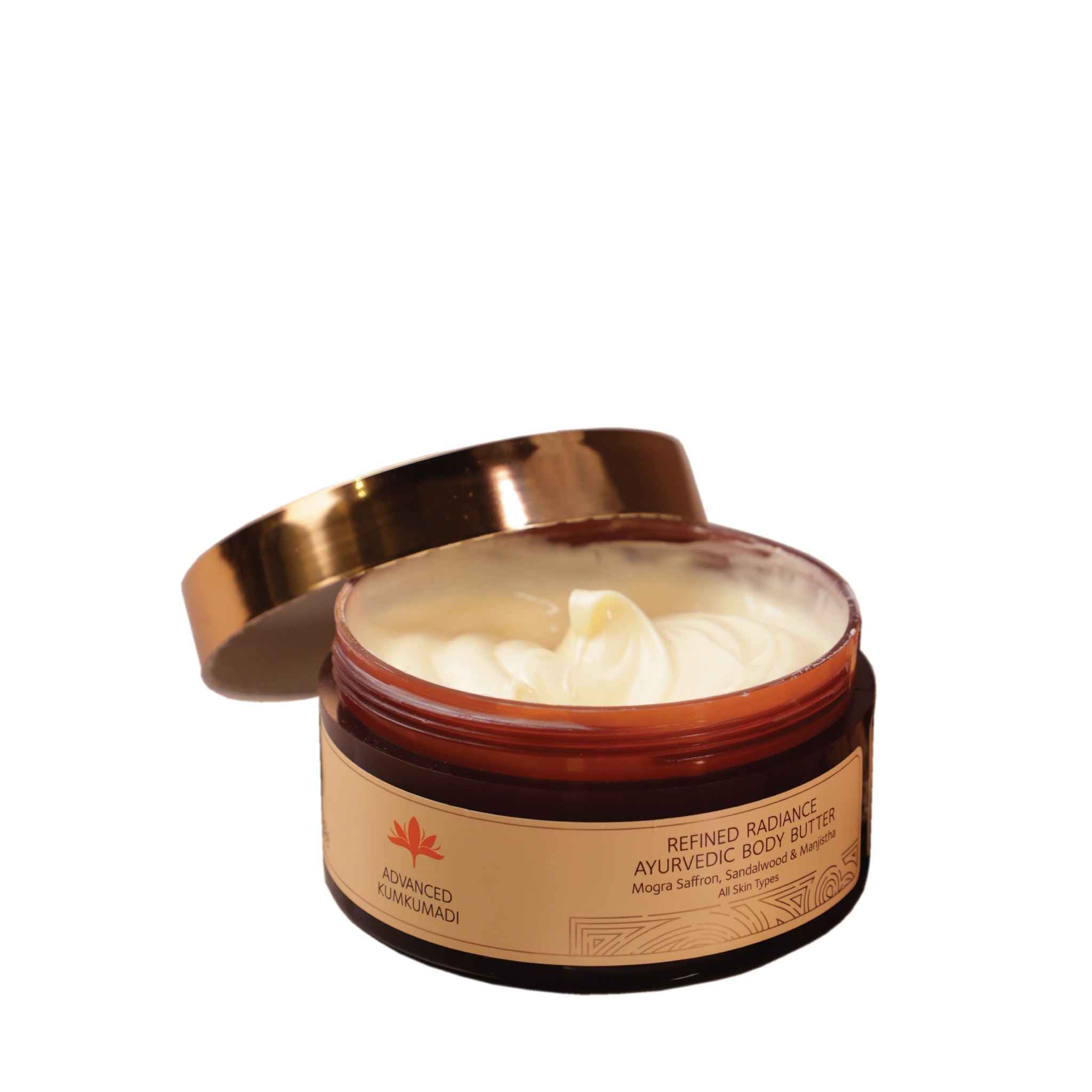Aqua, Cocos Nucifera (Coconut) Oil, Polyglyceryl-2 Stearate (and) Glyceryl Stearate (and) Stearyl Alcohol, Glycerin, Crocus sativas (Kumkum) Oil, Cetyl alcohol, Theobroma Cacao (Cocoa) seed butter, Sorbitan Olivate, Stearic acid, Prunus Amygdalus Dulcis (sweet Almond) oil, Aloe Barbadensis (Aloe vera ) Leaf Juice, Jasminum sambac (Jasmine) flower water, Mangifera Indica (Mango) seed butter , Parfum, Euphorbia Cerifera (Candelilla) wax, Betain, Sodium PCA, Isoamyl laurate, Benzyl alcohol (and) Glyceryl Laurate, Glyceryl stearate, Tocopherol, Squalane, Sodium Gluconate, Xanthan Gum, Santalum album (Sandalwood) extract, Glycyrrhiza Glabra (Licorice) Extract, Rubia Cordifolia (Manjistha) extract, Symplocos racemosa (Lodhra) extract, Crocus sativus oil.