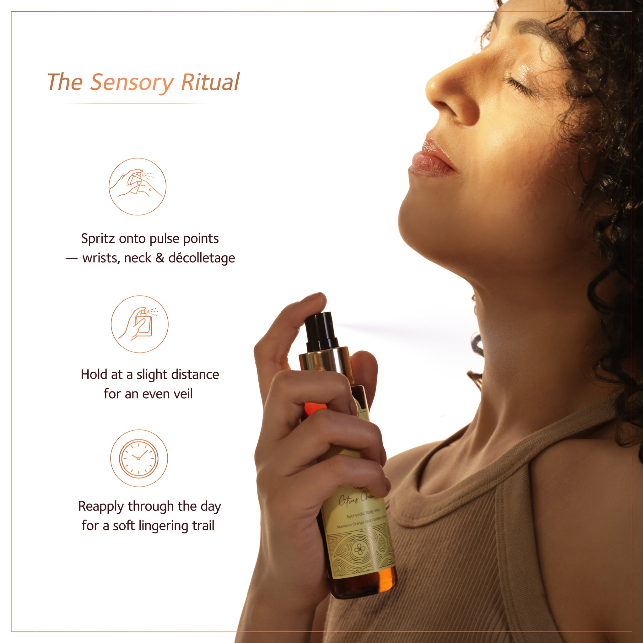 Citrus Chakra captures that rare in-between. Mandarin orange and golden lemon burst forward with the brilliance of a sunlit morning, softened by the airy bloom of neroli and grounded in a whisper of warm spice. Zesty, fresh and radiant — it wears like a deep breath of mountain air, wherever you are.